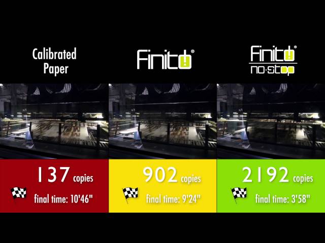Finito NoStop складається з компресійного тришарового офсетного полотна і поддекельного матеріалу з термомодифікованого поліуретану. Новинка дозволяє проводити заміну полотен і підкладів за один цикл, використовуючи один аркуш матеріалу, без додаткової підрізки і підбору товщини піддекелів. Finito NoStop доступний для замовлення в форматах всіх аркушевих друкарських машин, в товщині 2,35-2,55 мм.